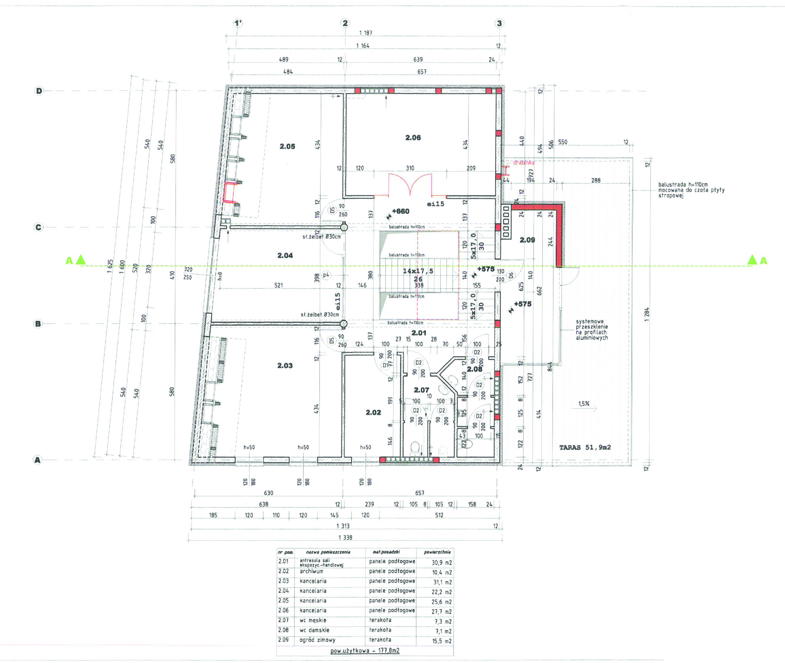 W skład 2go piętra wchodzą pomieszczenia biurowe, 2 toalety oraz loggia z wyjściem na taras